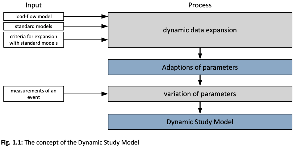 For this purpose a load-flow model of the CE-system was expanded with standard models for generators and appropriate controller models in order to represent the dynamics of the interconnected CE power system. With defined criteria it is possible to choose, which generators should be taken into account for dynamic analysis. The following Figure 1.1 shows the concept of the Dynamic Study Model.